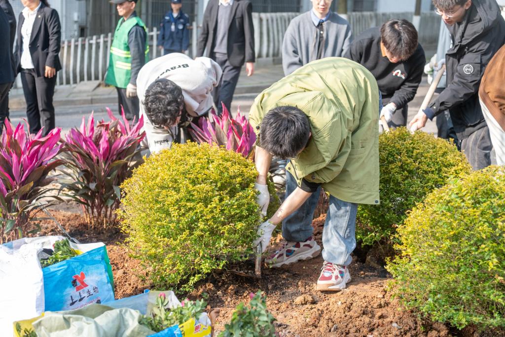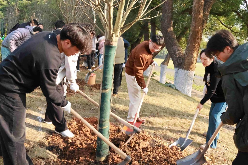 活动现场,大家深受感染,在领取树苗和种植工具后,几人一组挖坑栽苗、培土固根、踩实浇水,配合默契,在后勤保障部工作人员的协助下,公司党委书记李长庚、副书记董晶晶带领学院师生代表种下棵棵玉兰树,共同组成学院“智芯林”。新种下的树苗和“生态花境”在春日里展现出勃勃生机,为天心校区增添了几分绿意。